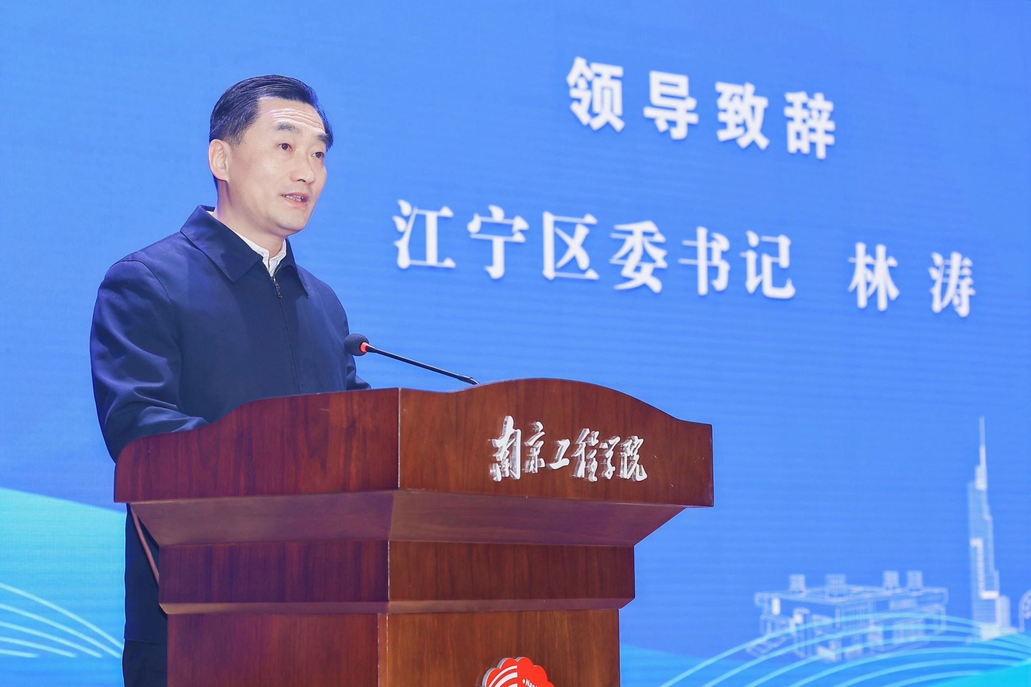 林涛对大会的召开表示热烈祝贺,向长期关心支持江宁发展的社会各界表示衷心感谢,并简要介绍了近年来江宁区域经济发展情况。他表示,作为首家入驻江宁大学城的省属本科高校,凯发k8官网与江宁区联手打造了环天印湖科技创新示范园区等创新创业载体,为校地高质量发展添加了源源动力。目前,校地双方正处于事业发展关键期,合作潜力巨大,发展前景广阔。真诚期待以本次活动为起点,全力支持南工程建设发展,深化校地企协同创新,建立常态化联系走访机制,做到资源共享、人才共育、平台共建,打造政产学研合作新样板、谱写校地融合发展新篇章。