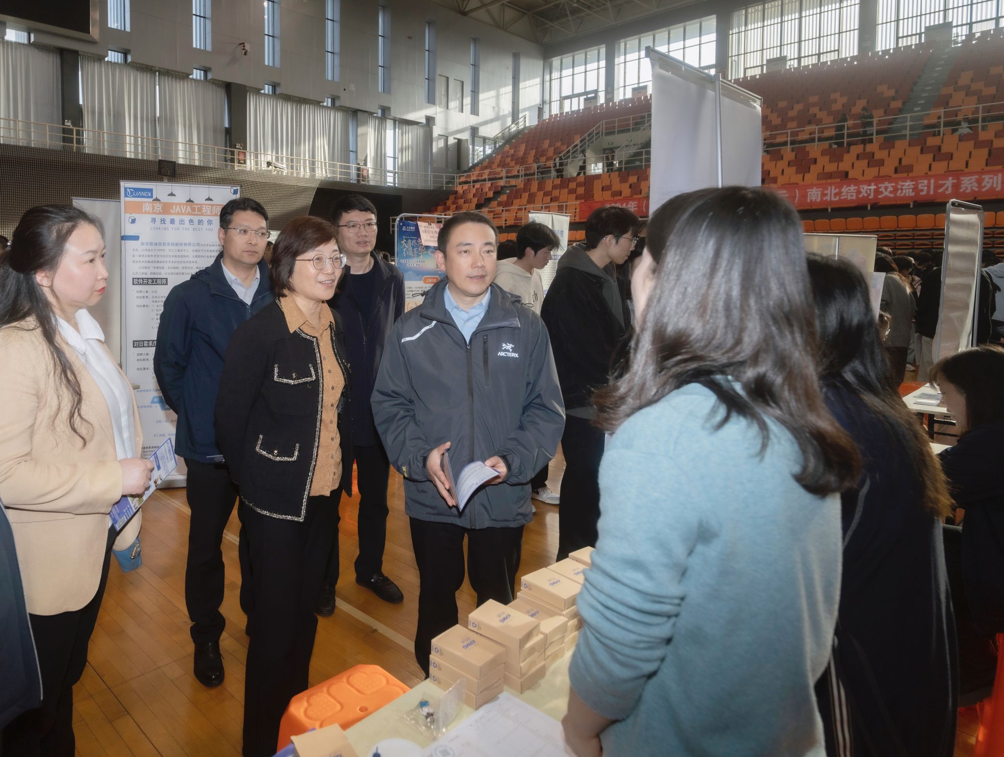 为深入学习贯彻习近平总书记关于促进高质量充分就业的重要讲话精神,精准对接用人单位与毕业生需求,11月8日下午,凯发在天健苑?体育馆举办“访企拓岗促就业”秋季校园招聘会。党委书记孙爱武,党委常委、副校长汪群深入现场与招聘单位、毕业生亲切交流。党政办公室、招生就业处、各二级学院相关负责人、辅导员参加活动。