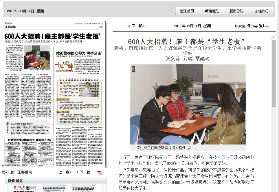 《扬子晚报》:600人大招聘!雇主都是“学生老板”