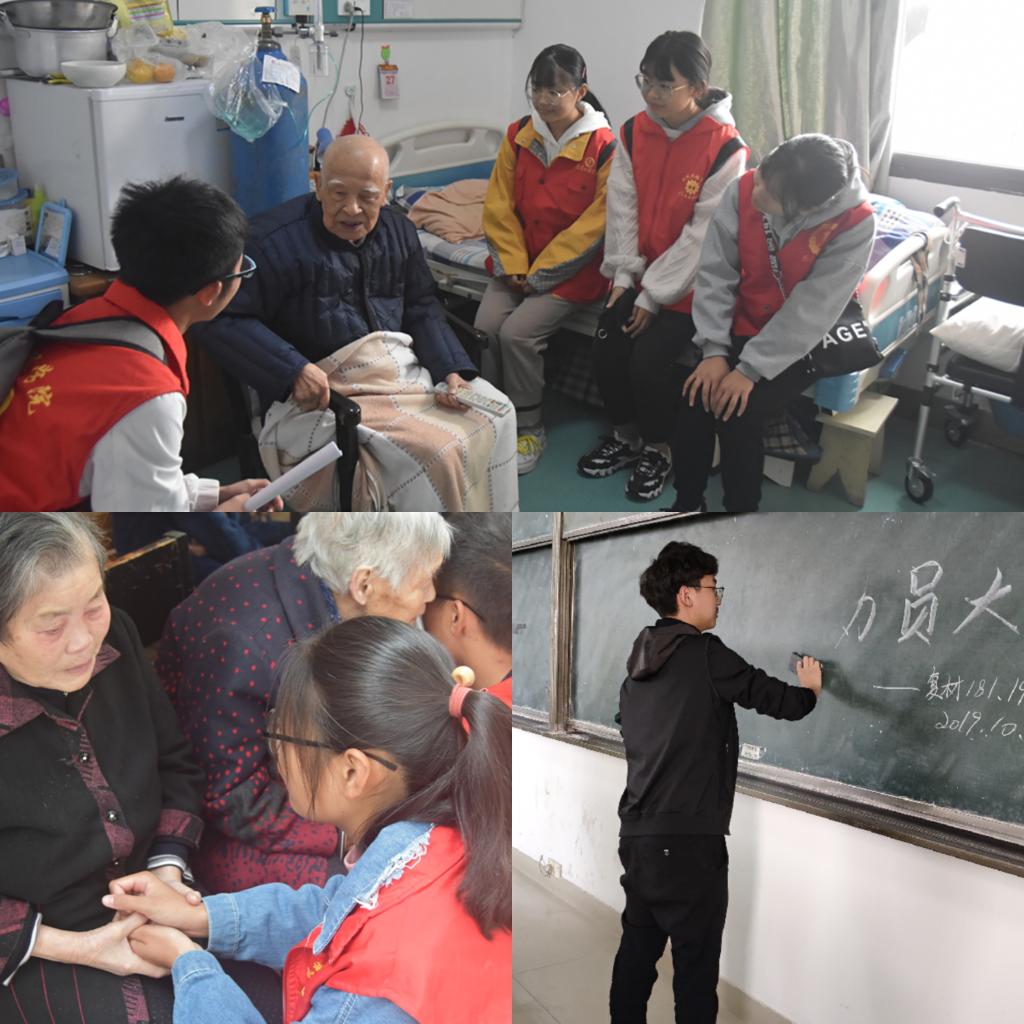 为加强青少年尊老敬老意识,提升社会责任感,10月27日,该院志愿者前往正阳护理院和康乐福托老院开展志愿活动。志愿者们进入敬老院,亲切地问候老人,并为他们带来了自己精心准备的节目,赢得了老人们的夸赞。老人们感受到同学们蓬勃朝气的同时,也敞开心扉畅谈他们的人生及感悟,向志愿者们传授了许多生活智慧。