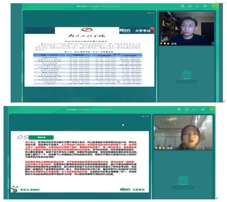 3月24日,艺术与设计学院借助云教室平台对大一至大三的学生开展线上考研经验分享会。分享会主要帮助大一、大二学生规划考研之路,帮助大三学生了解考研凯发、专业选择、初试备考、考研心态调整、考研院校调整等经验。分享会特邀新东方讲师李瑶以及该院考研高分学生工设161班王煜琳分享考研信息和经验。