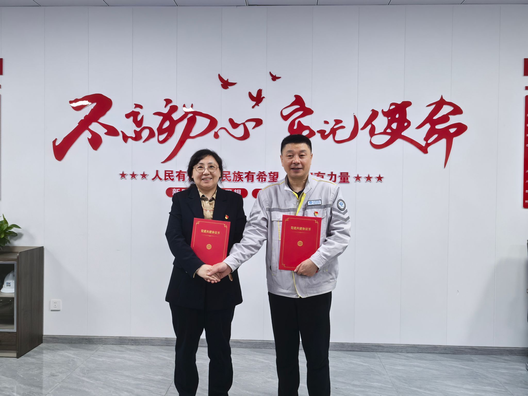 韩佰春在讲话中感谢该院多年来对中煤(舟山)的人才支持,充分肯定了该院毕业生优秀的综合素质。他介绍了公司的起源、发展和建设情况,中煤(舟山)发电有限公司由实力雄厚的中煤电力有限公司倾力打造,致力于建设2台66万千瓦级的超超临界燃煤发电机组,并同步配备脱硫脱硝设施。薛锐从能动学院发展概况、专业设置以及人才培养效果等方面介绍该院办学概况,感谢中煤(舟山)对学院毕业生就业工作长期以来的支持。双方签订了党建共建协议,围绕党建共建、人才培养、员工培训等方面展开深入交流,希望通过加强院企合作,协同育人,更好促进国家能源事业发展。